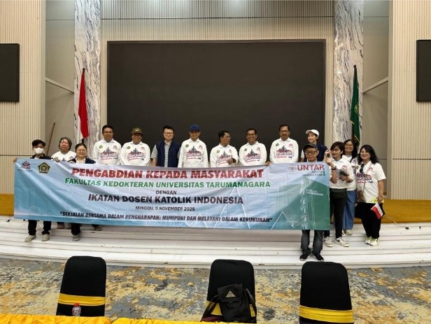 Suasana penuh semangat dan kebersamaan mewarnai halaman Kantor Kementerian Agama Republik Indonesia (Kemenag RI) sejak Minggu pagi, 9 November 2025. Ratusan peserta mengikuti kegiatan “Jalan Sehat Kerukunan” yang merupakan implementasi Asta Prioritas Menteri Agama terkait meningkatkan kerukunan dan cinta kemanusiaan. Kegiatan yang mengusung tema “Berjalan Bersama dalam Pengharapan: Mumpuni dan Melayani dalam Kerukunan.” merupakan kolaborasi Direktorat Jenderal Bimbingan Masyarakat Katolik, dan Ikatan Dosen Katolik Indonesia (IDKI). Pada kesempatan ini, Fakultas Kedokteran Universitas Tarumanagara (FK UNTAR) juga hadir berkontribusi dalam pelayanan kesehatan komprehensif bagi seluruh peserta kegiatan. Pemeriksaan yang dilakukan meliputi tekanan darah, hemoglobin, hematokrit, gula darah, asam urat, antropometri, komposisi tubuh, kekuatan otot, dan hidrasi kulit, serta konsultasi langsung dengan dokter.
